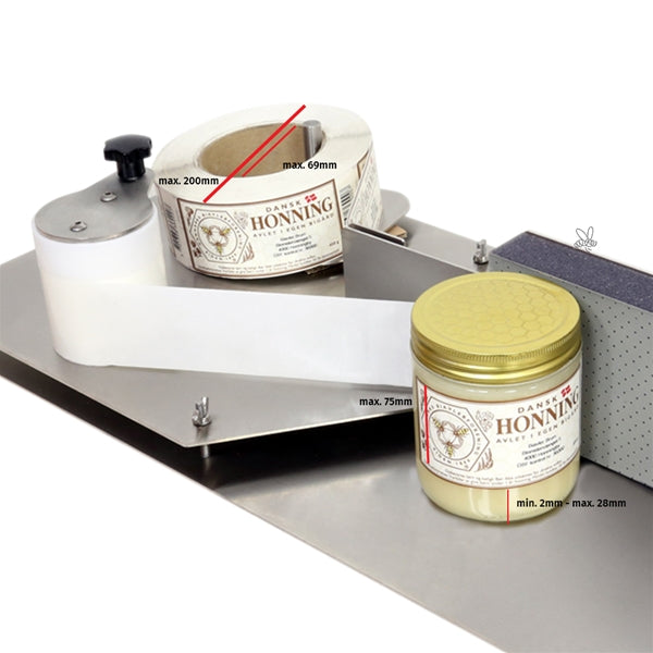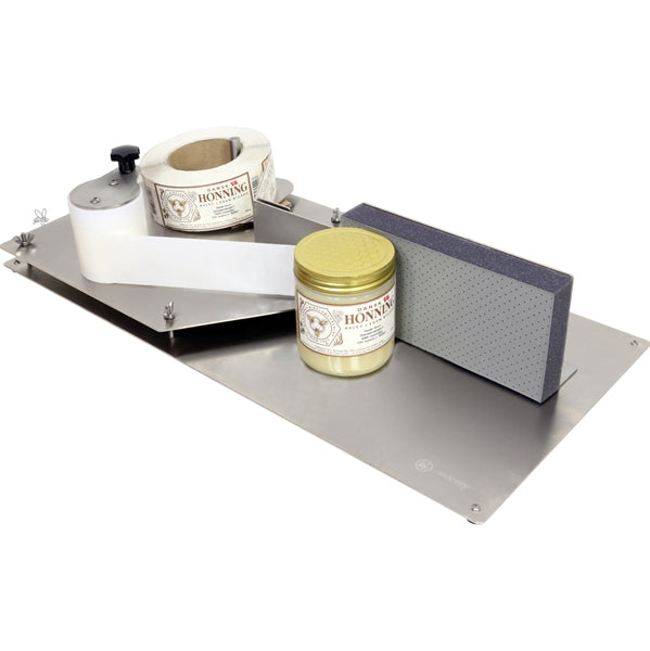 Mit diesem manuellen Etikettenspender bringst du Etiketten schnell und präzise auf deine Honiggläser auf. Er ist eine praktische Unterstützung, die deine Etikettierarbeit um das bis zu Dreifache beschleunigt, verglichen mit dem Anbringen von Hand.