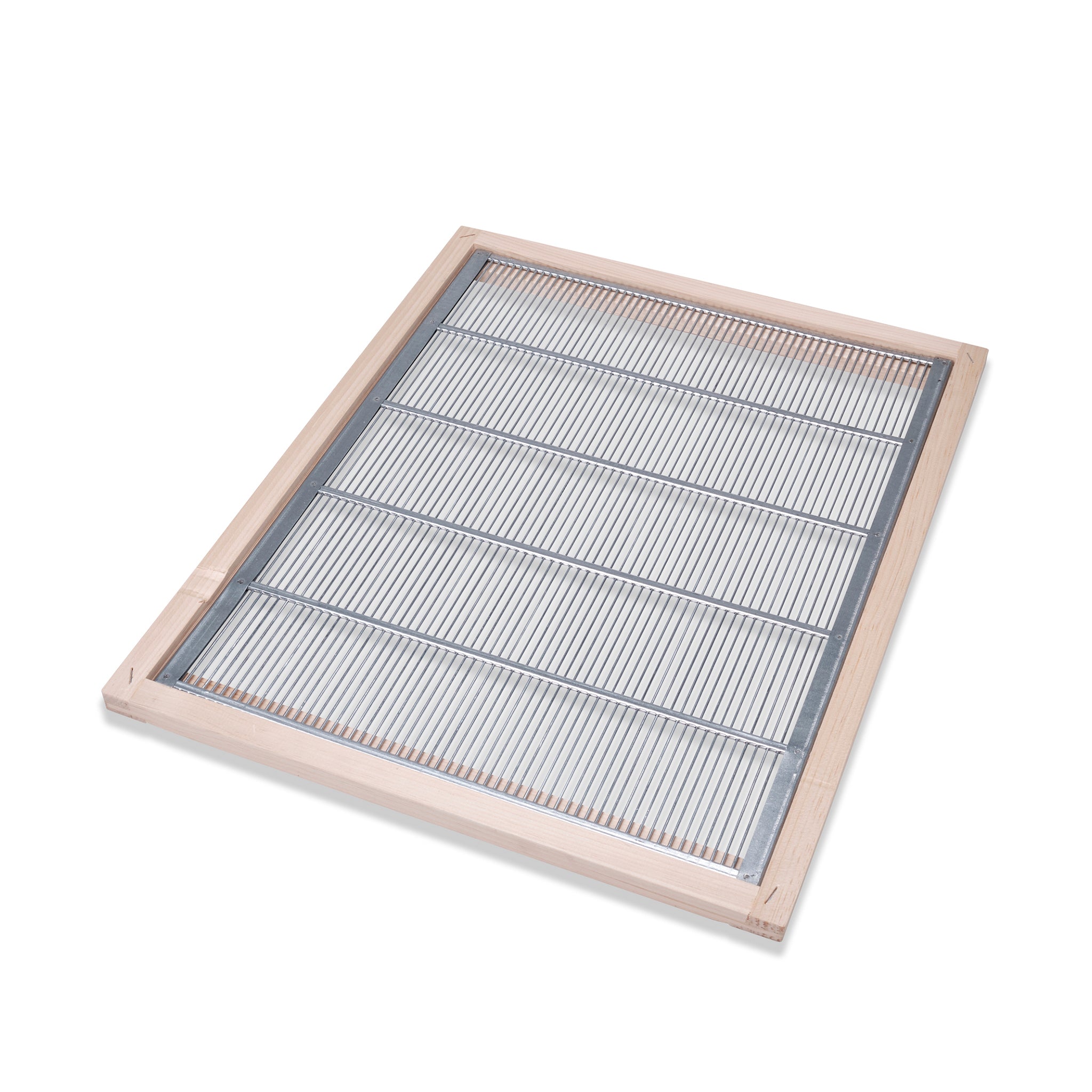Durch den Holzrahmen wird der richtige BeeSpace sichergestellt. D.h. die Arbeiterinnen können sich frei zwischen dem Brut- und Honigraum bewegen.