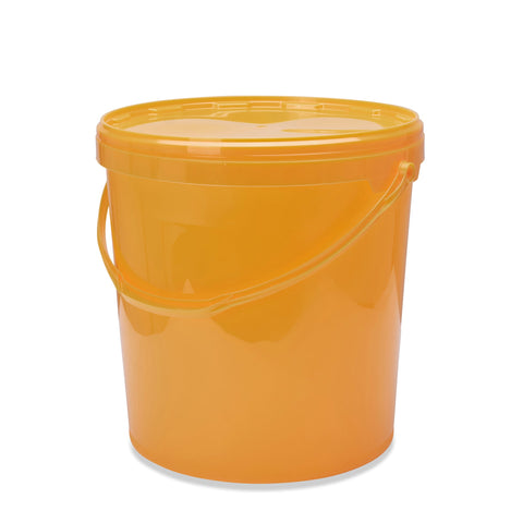 Du kannst deinen Honig in verschließbaren, lebensmittelechten Kunststoffeimern lagern. Achte darauf, dass die Eimer vorher keine anderen Lebensmitteln enthalten haben. Denn Kunststoff speichert gerne die Gerüche. Diese werden dann vom Honig aufgenommen.