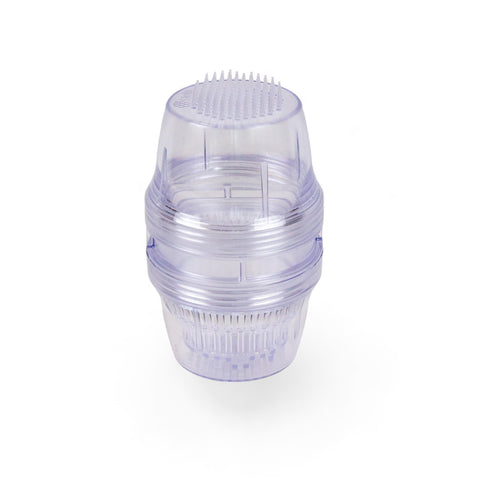 - Milben auffangen: Öffne den Messbecher und stülpe das Honigfeinsieb über diesen und drehe ihn um. Siebe den Puderzucker so lange bis er vollständig durch das Sieb gefallen ist.