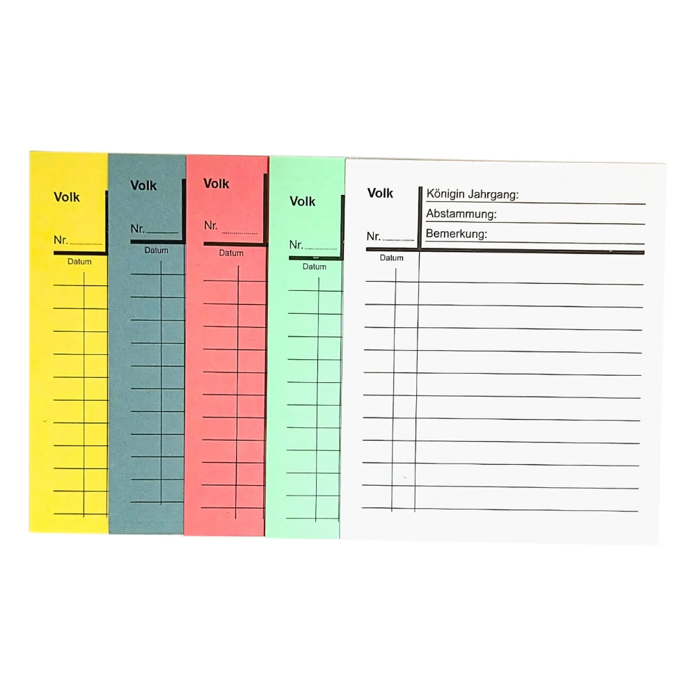 Mit unseren praktischen Notizkarten für die Beutenmarkierung behältst du den Überblick über deine Bienenvölker. Diese Karten sind speziell dafür entwickelt, dir die Dokumentation wichtiger Informationen direkt am Bienenstock zu erleichtern.